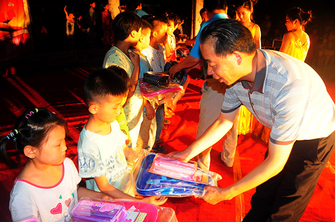 晚上7点30分,田留栓在文艺演出开始前致辞。田主席首先介绍了本次结对帮扶的目的、意义和主要内容,简要介绍了学校的总体情况,总结了学校精神文明主要工作和结对帮扶工作。他表示,在前期开展工作的基础上,学校将会充分发挥办学和精神文明创建的优势,在组长单位的领导下,一如既往地做好文明帮扶工作。接着,田留栓、王道乐、朱红星和校文明办同志为曾楼村100多名留守儿童捐赠了文具和学习用品,留守儿童代表发了言,曾楼村为学校赠送了“爱心助学 帮困育才”的锦旗。