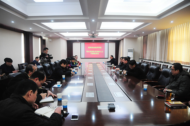 李明中代表学校党政向各民主党派及无党派人士代表通报了2015年学校融合发展的情况。