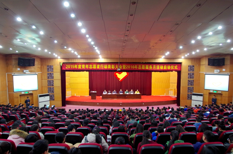 3月3日下午,在第53个学雷锋纪念日和第17个中国青年志愿者服务日到来之际,学校2015年度青年志愿者行动表彰大会暨2016年志愿服务月活动启动仪式在英才校区学术报告厅隆重举行。校党委副书记、副校长曾照烨出席活动,宣传部副部长、文明办主任吴达,学工部部长、学生处处长张广芝,团委书记郝景昊,团委全体同志,各院(系)团总支书记以及600余名青年志愿者参加了表彰大会和启动仪式。