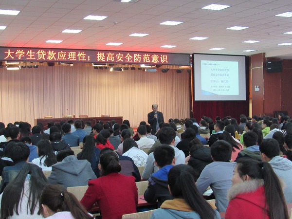 2016年3月19日上午,由学校党委宣传部、学工部联合主办的大学生安全教育专题报告“大学生贷款应理性,提高安全防范意识”在龙子湖校区大学生活动中心举办,校文法系教授杨代英应邀主讲本次报告,全校近500名学生参加报告会。