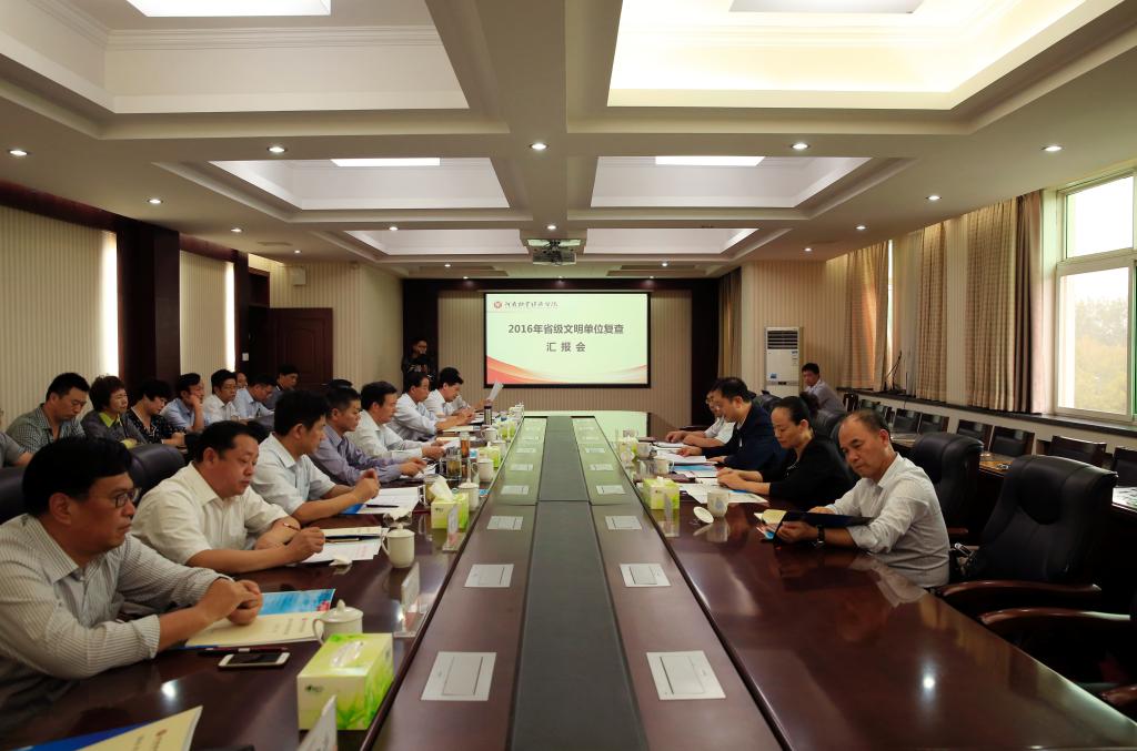9月27日下午,省级文明单位第七复查组组长、河南省新闻出版广电局直属单位党委副书记王晓晖,复查组成员马阔丰、李永成、何进喜一行四人,莅临我校复查指导2016年度精神文明建设工作。复查组通过听取汇报、查阅材料、实地考察等形式,对我校2016年度精神文明建设工作进行了全面考评。