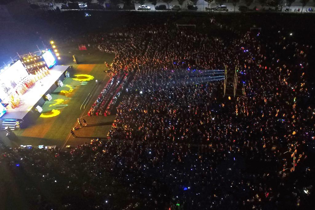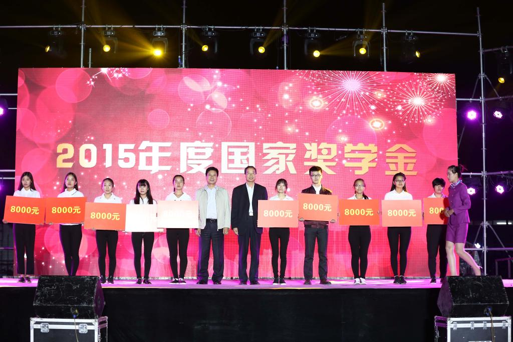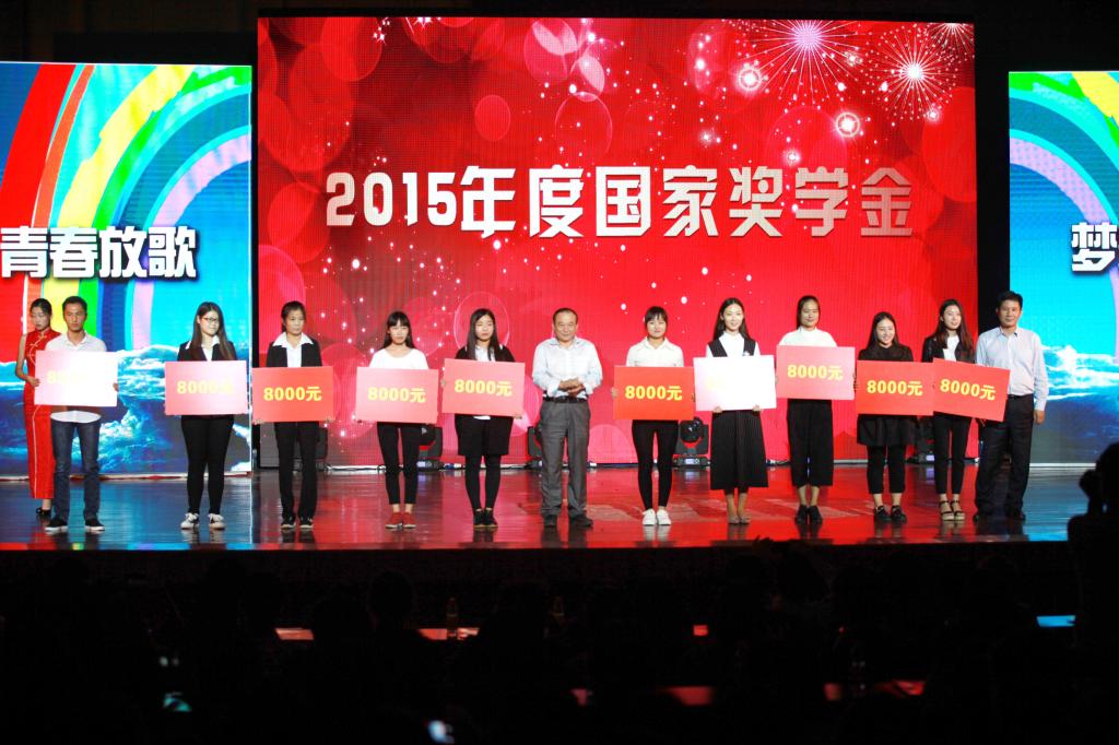 为庆祝新中国成立67周年,迎接2016级新生的到来,展现tyc8722太阳集团城师生风采,9月28日、29日晚,我校“青春放歌·梦想启航”2016年“迎新生·庆国庆”文艺晚会分别在英才校区大礼堂、龙子湖校区田径场隆重举行。校领导曾照烨、张卫宪、许圣道、程慎、荆其增、田留栓,与三校区老师和一万三千余名新生共同享受了美轮美奂的视觉盛宴,并为优秀学子颁发了2015年度、2016年度的国家励志奖学金、省级先进班集体、省级优秀学生干部、省级三好学生等奖项。