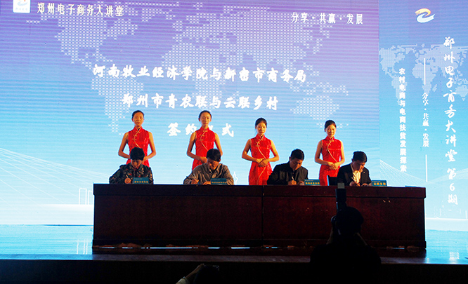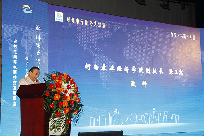 10月20日,由郑州市人民政府主办,我校与郑州市商务局、共青团郑州市委、云联乡村信息科技有限公司承办的第6期“郑州电子商务大讲堂”在英才校区大礼堂举行。本期主题为“农村电商与电商扶贫发展探索”,同时启动“河南108宝评选大赛”。副校长张卫宪、中国国际电子商务中心研究院副院长张建军、郑州市商务局副局长刘天启、河南省网络营销协会秘书长孙银杰、河南财经政法大学电子商务与物流管理学院院长潘勇教授、河南省电子商务产业园总经理曲庆祥等专家和电商企业大咖共聚我校,共同探讨农村电子商务发展。