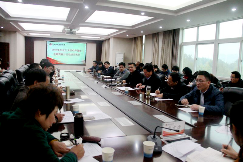 校党委书记王保国在会上指出,校党委高度重视人文教育、思想政治教育,学校围绕立德树人的根本任务,致力于构建大思政、大学工、大后勤格局,统筹上上下下、方方面面的力量,共同做好思想政治教育工作。高校教育工作者要立足人才培养需求,努力把思想政治教育工作贯穿于学校教育教学管理和人才培养全过程,教会学生做人做事,培养学生科学的思维方式,使学生将知识内化于人格。他强调,开展社会主义核心价值观主题教育活动要接地气,使活动系列化、品牌化,要根据面临的教育对象有针对性地开展工作,通过活动使每一个师生参与到活动中,各部门要将“三育人”工作寓于日常教学、科研、生活和管理工作中,分工明确,形成合力,共同营造良好的育人环境。