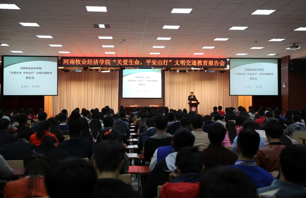 为提高我校师生的交通法律知识,增强交通安全意识,11月10日下午,学校邀请河南省公安厅高速交警总队十支队副队长李红彬警官为我校师生作文明交通教育报告。本次报告会由党委宣传部、文明办、校团委主办,制药工程学院承办,400多名师生在龙子湖校区大学生活动中心聆听了报告。报告会由宣传部副部长、文明办主任吴达主持。