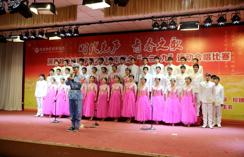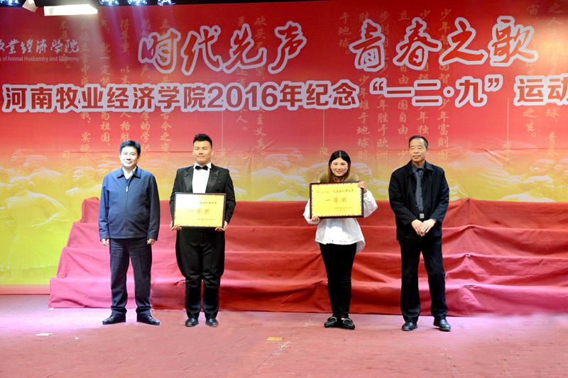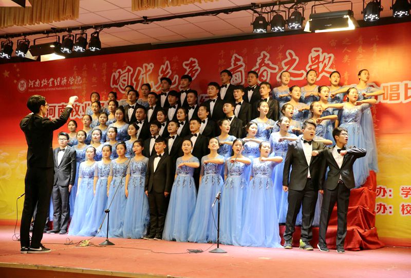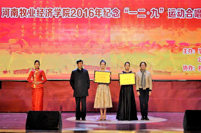 各院(系)高度重视本次比赛,22支参赛团队利用课余时间积极排练,公共艺术教研部老师分赛区悉心指导,提高了比赛的艺术水平。比赛中,铿锵有力的《精忠报国》、《强军战歌》,婉转悠扬的《映山红》、《十送红军》,气势磅礴的《突破封锁线》、《迎风飘扬的旗》,经典旋律再现的《南泥湾》、《青春圆舞曲》、《蝴蝶泉边》,别具一格的外国歌曲《莫斯科郊外的晚上》、《库斯克邮车》等一首首脍炙人口的歌曲被演绎得淋漓尽致。参赛同学们饱满的热情、扎实的唱功、整齐的着装和朝气蓬勃的精神面貌,深深地打动着在场的每一位观众,台上歌声嘹亮、台下掌声雷动,全体师生在接受了一场深刻的爱国主义教育的同时,也受到了高雅的艺术熏陶。经过激烈角逐,英才校区信息与电子工程学院、物流与电商学院,北龙校区旅游管理系、能源与动力工程学员代表队分别获得本次大赛团体一等奖,与会领导为获奖单位颁发了荣誉奖牌。