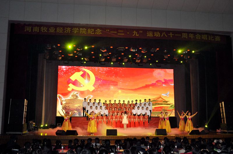 为纪念“一二•九”学生爱国运动八十一周年,弘扬社会主义核心价值观,进一步激发青年学生的爱国荣校热情,12月7日、8日,由学工部、校团委、公共艺术教研部主办的tyc8722太阳集团城纪念“一二•九”运动八十一周年合唱比赛分别在英才校区大礼堂、龙子湖校区活动中心隆重举行。校党委副书记、副校长曾照烨,副校长许圣道,副校长陈艳,工会主席田留栓出席活动并观看整场比赛。相关职能部门负责同志,各院(系)党总支书记、副书记以及团总支书记、辅导员老师与近3000名学生一同观看了比赛。
