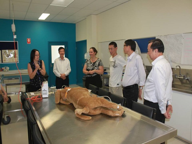在澳大利亚墨尔本理工学院,李明中校长一行实地考察了墨尔本理工学院国际标准屠宰分割培训基地和葡萄酒酿造实验实训中心。墨尔本理工学院兽医护理培训中心国际项目部运营总监Tim Gilbert介绍了该校的基本情况和兽医护理培训中心的国际课程包开发标准与培训实施,双方就畜牧兽医国际师资培训、课程引进等方面达成一致。