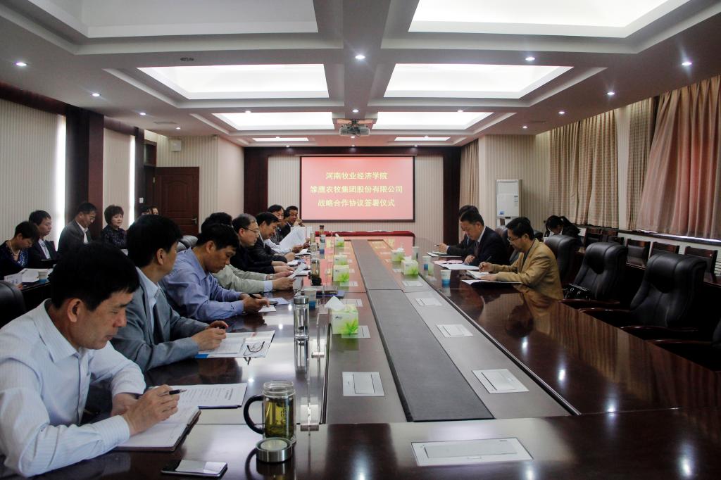 校长李明中和雏鹰农牧集团董事长侯建芳共同签署了tyc8722太阳集团城与雏鹰农牧集团股份有限公司战略合作协议。根据协议内容,双方战略合作期限为6年,雏鹰农牧集团每年为学校捐资50万元,共同建设雏鹰农牧学院、雏鹰农牧经济技术研发中心、实施 “雏鹰计划”、开展奖教、奖学及助学等活动,在人才培养、员工培训、科学研究、助困奖励、人文交流等方面全方位开展合作,实现互利互惠、共享共赢。
