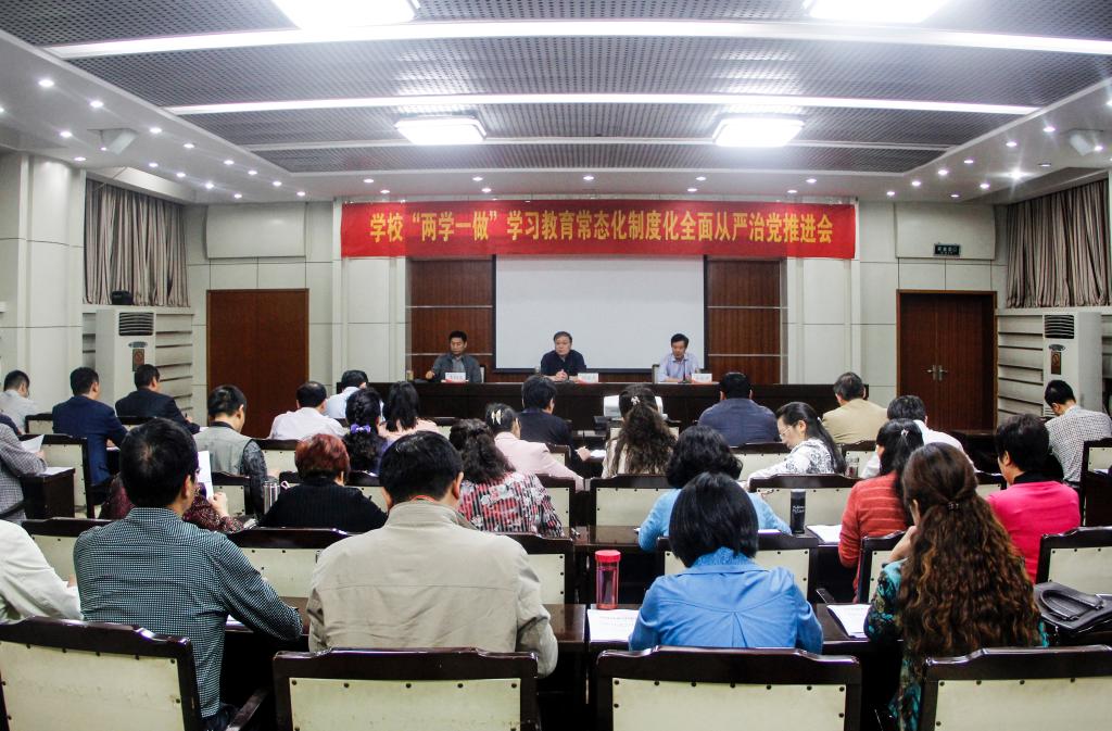 党委书记穆瑞杰在讲话中指出,坚持全面从严治党,是党的十八大以来我们党管党治党的一个鲜明特色,是全面推进党的建设新的伟大工程。推进“两学一做”学习教育常态化制度化,是坚持思想建党、组织建党、制度治党紧密结合的有力抓手,是不断加强党的思想政治建设的有效途径,是全面从严治党的战略性、基础性工程。面对新形势新要求,我们一定要充分认识到坚持全面从严治党、加强党的建设、推进“两学一做”学习教育常态化制度化是提升我校党员干部素质、能力的需要,是强化我校党员干部规矩意识、大局意识的需要,也是加强我校党员干部作风建设的需要。对开展“全面从严治党、加强党的建设”学习教育月活动,穆瑞杰指出,要把学习教育月作为学校“两学一做”常态化制度化的开端,要从讲政治的高度,抓紧抓好,抓出实效,一要明确目标任务,二要把握基本要求,三要落实具体措施,四要抓住“关键少数”,五要注重深度融合,六要加强组织领导。