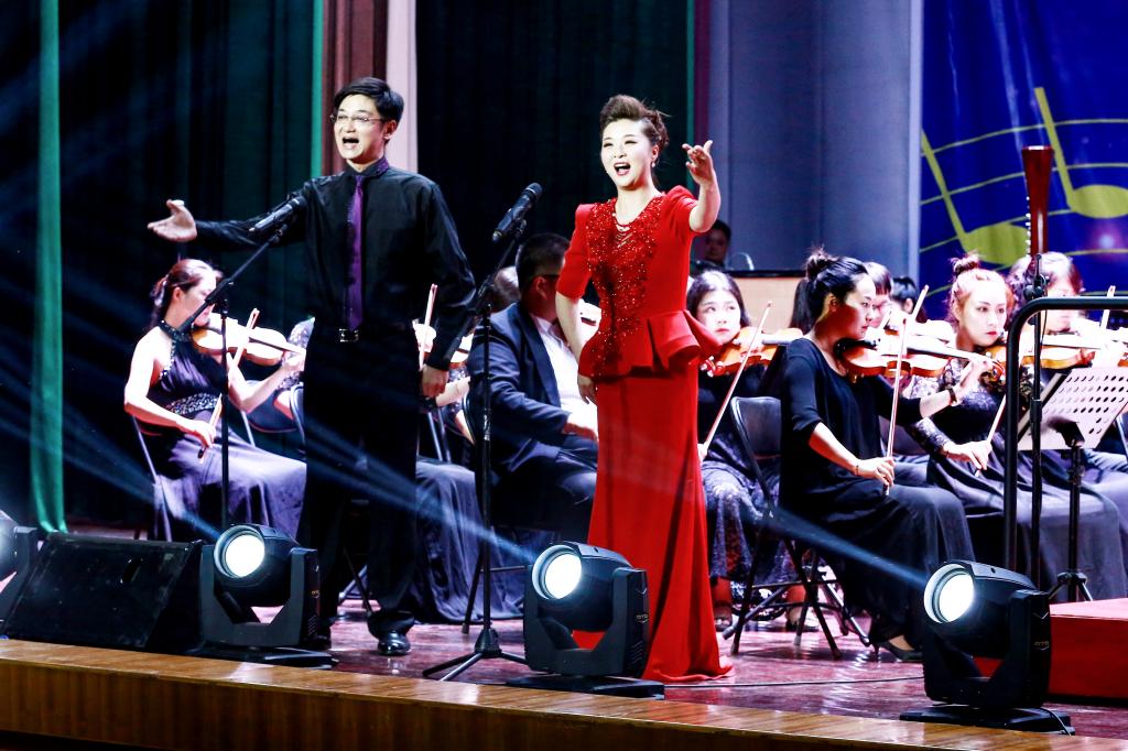 随着经典歌剧《白毛女》动人旋律响起,精彩的音乐盛典拉开序幕。在中央民族大学音乐学院指挥家陈昌宁教授指挥下,郑州师范学院音乐与舞蹈学院师生们为现场师生带来了中外经典歌剧唱段《北风吹》、《红梅赞》、《我亲爱的爸爸》、《清凌凌的水来蓝莹莹的天》、《小二黑结婚》、《你从哪里滚回来》、《乡村骑士》、《卡门》等十几个经典曲目。演出过程中,指挥家陈昌宁教授还向现场观众介绍了管弦乐团的组成及部分乐器,并分别演奏了精彩片段,让师生了解管弦乐器及演奏的基本知识。最后,音乐会在欢快的《拉得斯基进行曲》中圆满结束。