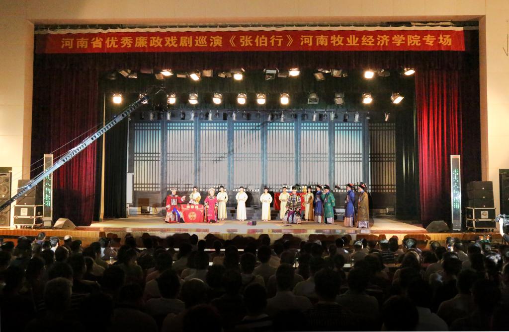 为继承和弘扬中华民族优秀传统文化,深入推进党风廉政建设和反腐败工作,根据中共河南省纪委、省委组织部、省委宣传部、省高校工委的统一部署,6月14日下午,校领导班子成员、省专项审计组、全校科级以上干部、辅导员以及学生代表1300余人,在英才校区大礼堂观看了由河南豫剧一团表演的优秀廉政戏剧《张伯行》。