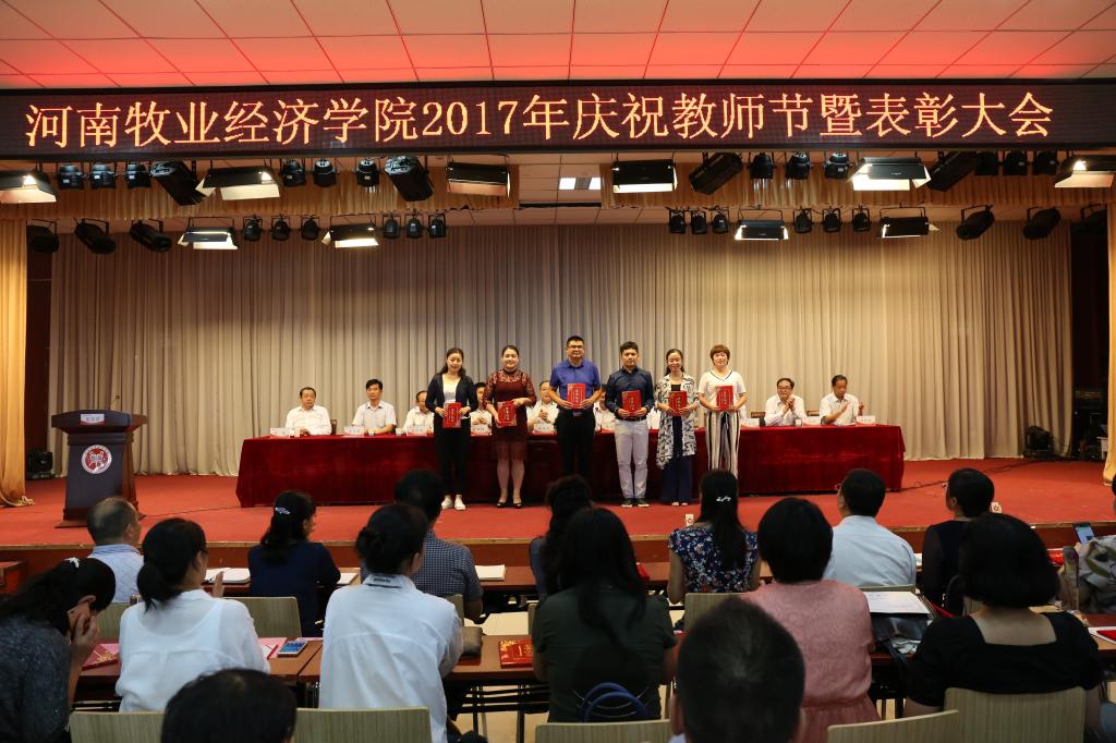 荣获“全国科普工作先进工作者”称号的张长兴,河南省高等教育教学成果一等奖项目主持人王永芬、杨炳学,河南省科技进步一等奖成果获得者宋素芳,第四届河南省本科院校青年教师数学教学技能竞赛获奖者徐香琴,以及本年度学校10名“最美教师”、91名“优秀教师、优秀教育工作者”和30名教学技能竞赛获奖者受到大会表彰。获奖教师代表、物流与电商学院电子商务教研室主任时炳艳做典型发言,食品工程学院胡楚桓同学代表全校学生向老师们表达了深深的感恩之心和真诚的节日祝福。(校工会 李克强/文 翟浩辰/图)