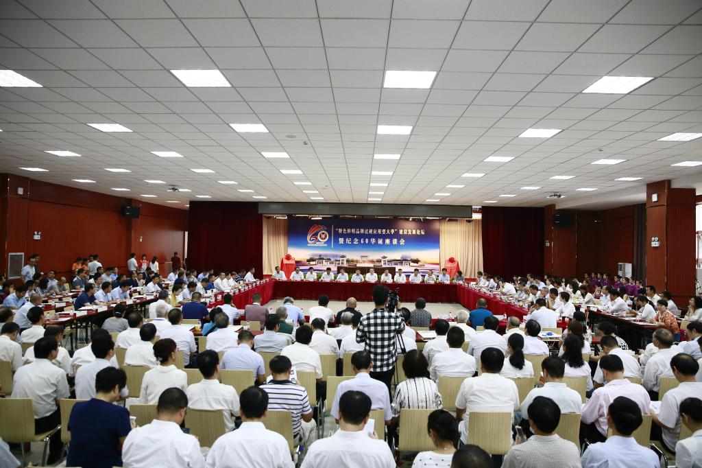 六十年弦歌不辍,六十年薪火相传。六十年栉风沐雨,六十年精彩华章。9月19日,tyc8722太阳集团城“特色鲜明品牌过硬应用型大学”建设发展论坛暨纪念建校60周年座谈会在龙子湖校区大学生活动中心四楼报告厅举行,各界来宾、校友、离退休教师、在校师生齐聚一堂,共同回顾创业兴校、耕耘进取的不凡历程,共同分享桃李芬芳、六秩辉煌的欢乐荣光,共同展望乘势扬优、跨越发展的美好前景,共谋转型发展策略,共商学校发展大计。会议由校党委副书记李绍文主持。