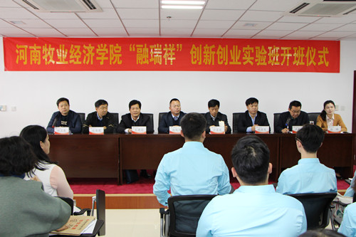 10月12日,我校创新创业学院首期“融瑞祥”创新创业实验班开班仪式在龙子湖校区图书馆9楼会议室举行。副校长许圣道、郑州融瑞祥动物药业有限公司董事长赵俊强、资深媒体人臧金生、龙子湖校区管委会主任王建昌,相关职能部门负责同志以及创新创业实验班全体学员、院系学生代表共100余人参加了开班仪式。