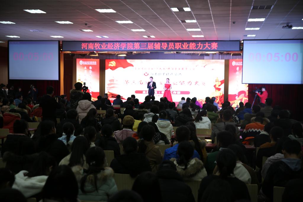 12月20日,学校在龙子湖校区大学生活动中心报告厅举行第三届辅导员职业能力大赛。校党委书记穆瑞杰、副校长许圣道、纪委书记李中华出席比赛。河南中医药大学、河南财经政法大学、华北水利水电大学、郑州铁路职业技术学院、河南职业技术学院等兄弟院校学工部部长,我校相关职能部门负责人、各院系党总支书记、副书记、团总支书记、辅导员、学生代表共400余人观看了比赛。