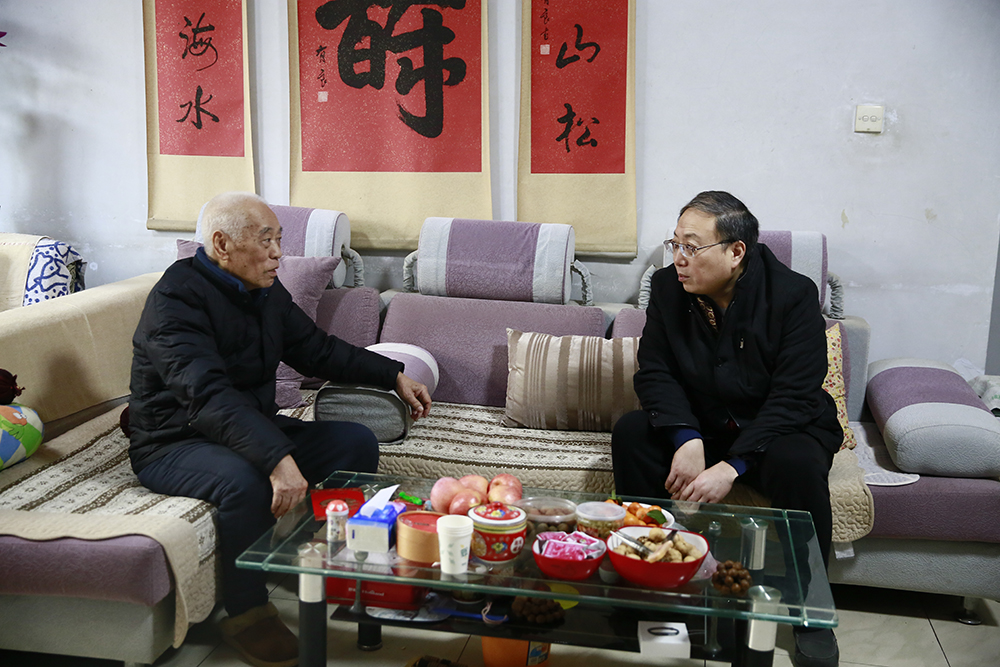 2018年1月30日上午,校党政领导班子在穆瑞杰书记和罗士喜校长的带领下,分组探望了我校离休老干部,老领导、老专家以及家庭生活困难的退休教职工,把全校师生对老同志的关爱带给他们,并祝他们新春快乐。