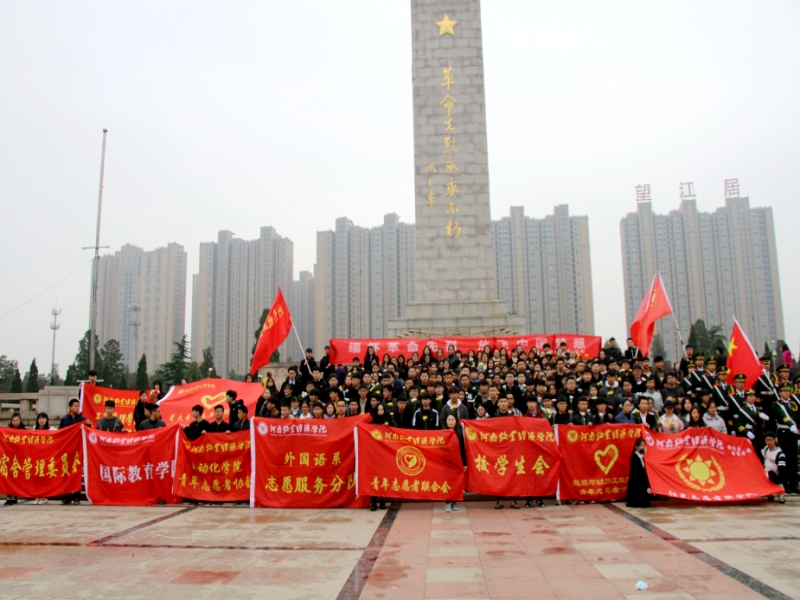 清明时节,春雨纷纷,依然无法阻挡青年人的脚步。上午6:00,我校青年学生们早早在郑州烈士陵园门口集合,准备祭奠活动。在庄严的国歌声中,我校国旗护卫队的同学们身着礼服,迈着矫健的步伐,为革命先烈纪念碑献上花圈,以缅怀逝去的峥嵘岁月。学生代表铿锵有力的发言,表达了新时期的青年大学生对革命先烈的崇高敬意。全体同学默哀三分钟,整个祭奠活动庄重而又肃穆,在场的同学们接受了一次深刻的爱国主义教育。各组织负责人带领同学们参观了烈士事迹陈列馆和英烈纪念墙,参观了郑州国防园、烈士骨灰堂、烈士墓区以及吉鸿昌、吴焕先、彭雪枫、杨靖宇纪念碑亭,重温了战火纷飞的岁月中一个又一个让人敬佩的人物和事迹。