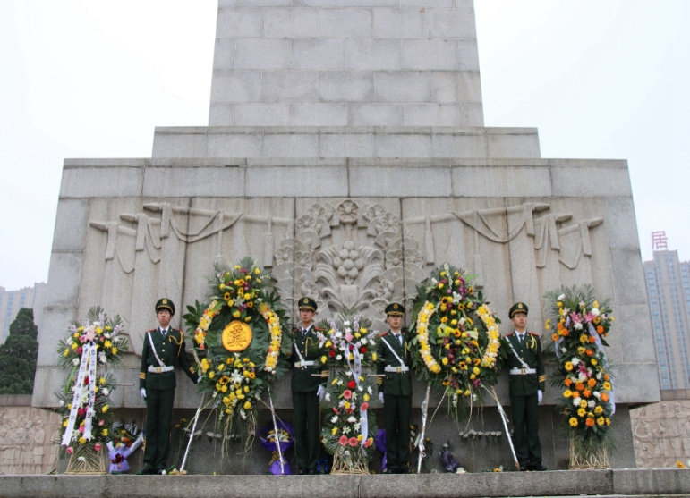 向烈士纪念碑献花圈 |
