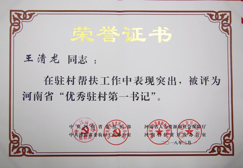 日前,全省选派驻村第一书记工作表彰推进会在郑州召开,我校选派的驻新蔡县大马庄村党支部第一书记王清龙同志获得“河南省优秀驻村第一书记”荣誉称号。