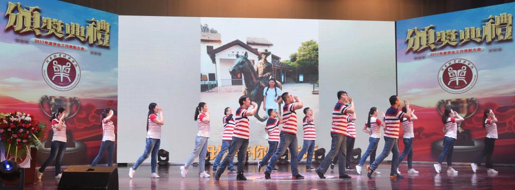 为国育才铸大道,春风桃李花盛开。学生工作是立德树人、引领成才的大道。颁奖典礼第三篇章“集体风范”为学生工作先进集体颁奖。校党委副书记、副校长曾照烨为全校资助工作先进单位和全校心理健康优秀二级工作站单位、全优宿舍优秀组织奖单位颁奖;校长罗士喜为创业就业工作先进集体和大学生创业孵化园优秀创业项目颁奖;校党委书记穆瑞杰为会计学院等8个2017年度院系学生工作考核先进集体颁奖。最后,颁奖典礼在歌伴舞《祝福中国梦》的昂扬旋律中落下帷幕。