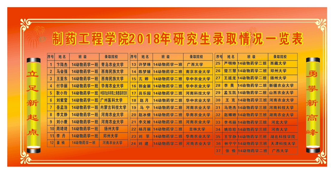 38人已确定被中国农业科学院上海兽医研究所、华中农业大学、华南农业大学、南京农业大学、扬州大学、吉林大学、郑州大学等国家重点院校录取。