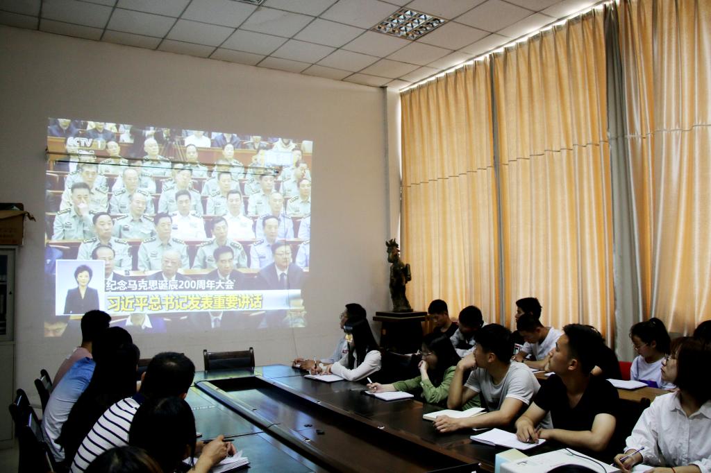 我校广大师生在教室、实验室、会议室、宿舍等地,通过电视、网络、手机客户端等,收听收看大会实况,积极关注习近平总书记重要讲话,深切缅怀马克思和他的伟大贡献,深入学习马克思主义中国化的最新理论成果。