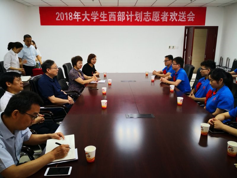 7月11日上午,我校2018年大学生西部计划志愿者欢送会在龙子湖校区图书馆738会议室举行。校党委书记穆瑞杰,副校长许圣道,相关部门负责同志以及即将奔赴服务地的10名志愿者参加了此次欢送会,会议由校团委副书记杨莉主持。