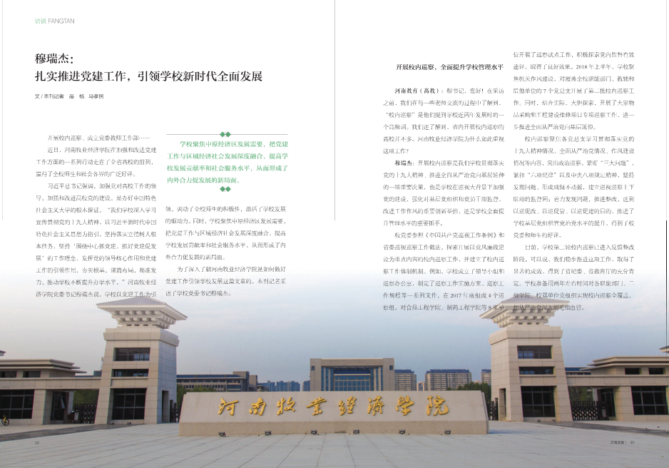 近日,《河南教育》(高教)2018年06月刊刊发校党委书记专访文章《扎实推进党建工作,引领学校新时代全面发展》(相关链接:https://mp.weixin.qq.com/s/gQG1cevDkugRXPZMJ1yi_A),全文转载如下: