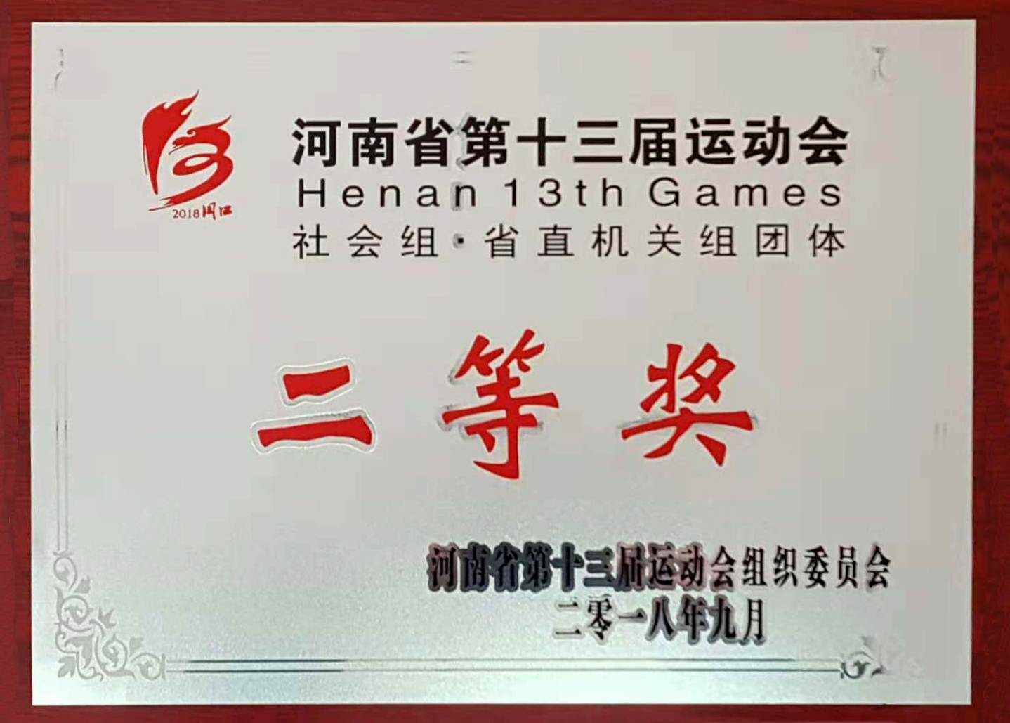 10月10日,河南省第十三届运动会组委会作出《关于表彰河南省第十三届运动会社会组省直机关组团体总分一二三等奖代表团的决定》(豫十三运组[2018]11号),对65个参赛代表团进行了公开表彰,颁发了获奖奖牌,我校作为获奖代表团之一喜获河南省第十三届运动会社会组省直机关组团体二等奖。