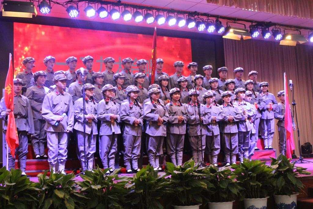 比赛现场,一首首嘹亮的红歌,抒发了同学们的爱国情怀,气势磅礴的《到吴起镇》、《在太行山上》,饱含深情的《我爱你中国》、《天耀中华》,铿锵有力的《走向复兴》、《强军战歌》,婉转悠扬的《映山红》、《十送红军》,气势磅礴的《保卫黄河》、《我宣誓》,节奏明快的《打起手鼓唱起歌》、《青春速递曲》等一首首耳熟能详的歌曲被深情演绎。参赛同学们用饱满的热情、嘹亮的歌声、扎实的唱功、整齐的着装、朝气蓬勃的精神面貌,将83年前学生爱国救亡运动的豪情壮志和新时代实现中华民族伟大复兴的昂扬斗志表现的淋漓尽致,引发了场内观众的爱国共鸣,赢得阵阵掌声。在合唱的基础上,各参赛队伍又融入了舞蹈、朗诵、情景剧、民族器乐、武术等表演形式,进一步增强了舞台表现力,不仅为观众带来了一场视听盛宴,更为观众们带来了一堂鲜活生动的思想政治教育实践课。