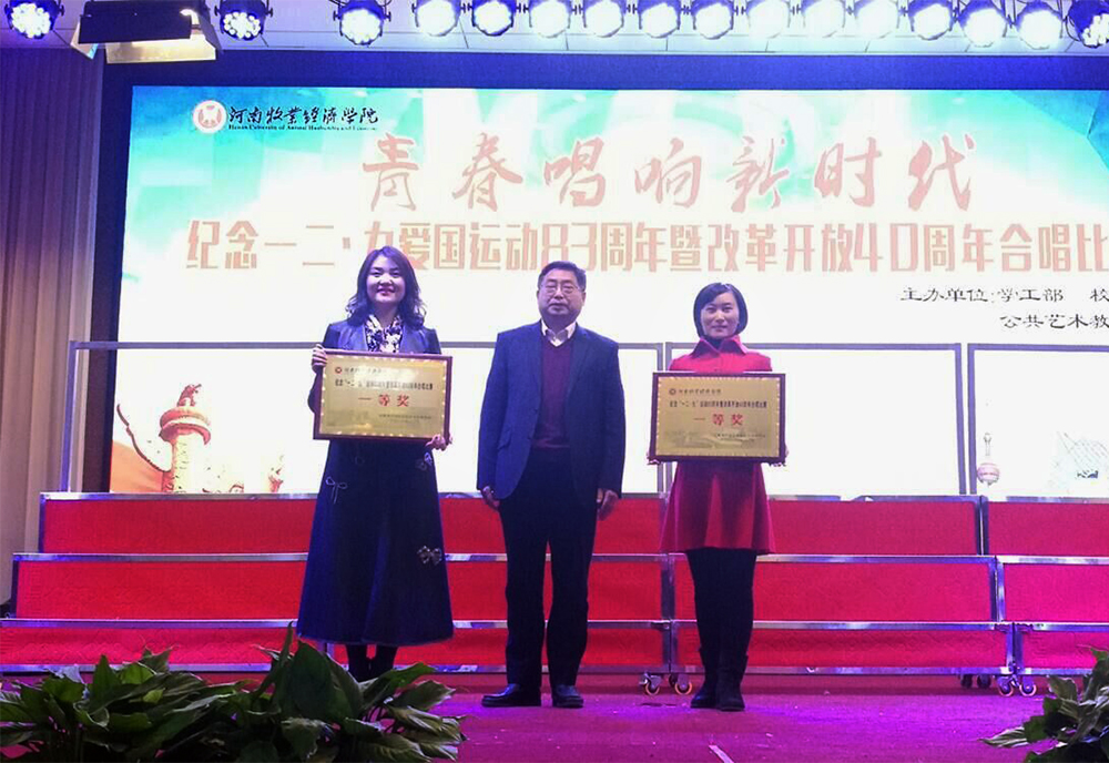 比赛最后,会计学院、旅游学院、信息工程学院、能源与动力工程学院代表队获得团体一等奖,动物医学院王月、物流与电商学院张宁宁同学获得优秀指挥奖,与会领导嘉宾为获奖单位和个人颁奖。之后,校领导亲切慰问了各学院代表队,并与师生代表进行了座谈交流。