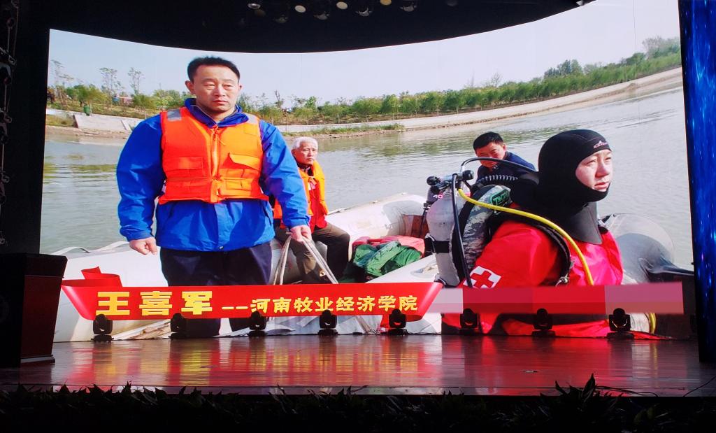 “一叶轻舟渡人渡己,一片爱心践行誓言。他争分夺秒,挽救他人生命财产,他义无反顾,践行党员教师使命。‘黄河游侠’是他的称号,‘给生者安慰,给逝者尊严’是他的诺言,‘人命大于天’是他的准绳。他用一次次行动写就不凡的人生”。这是12月19日下午,在省委高校工委、省教育厅主办的“出彩有你”——2018年全省教育系统精神文明建设成果展示表彰会议上,我校荣获2018“感动中原”十大年度教育人物称号王喜军老师的颁奖词。