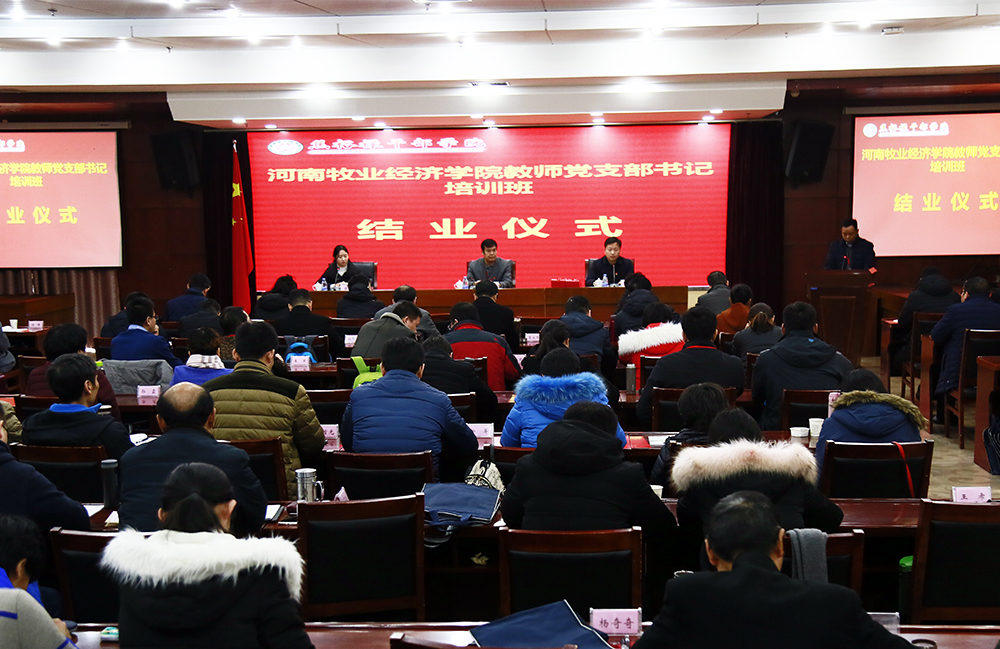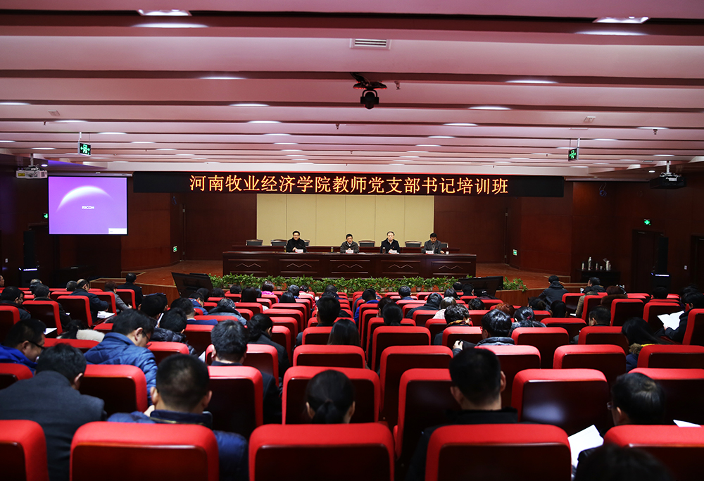 为全面贯彻落实《中国共产党支部工作条例(试行)》和中共中央组织部、中共教育部党组《关于印发〈高校党建工作重点任务〉的通知》精神,全面提升我校党支部书记综合素质和履职尽责能力,推进实施教师党支部书记“双带头人”培训工程,根据校党委安排,12月21日至23日,我校举办了2018年教师党支部书记培训班。河南省委高校工委组干处处长杨宗辉、校党委书记穆瑞杰出席开班仪式,校党委副书记、工会主席李绍文主持开班仪式。本期培训由校内培训和焦裕禄干部学院培训组成,各院部党总支书记、副书记、处级组织员、教师党支部书记以及各职能部门支部书记参加了培训。
