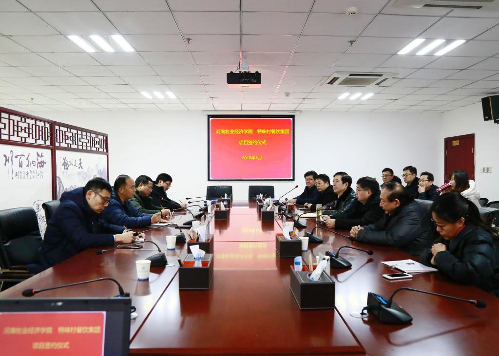 张卫宪代表学校与特味村餐饮集团控股郑州美宴食品有限公司签订了100万元横向课题合作协议。