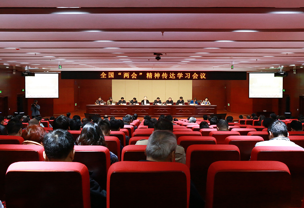 3月21日上午,学校召开全国“两会”精神传达学习会议,会议在龙子湖校区图书馆一楼报告厅和英才校区学术报告厅以视频会议的形式同步召开。校领导、全校科级及以上领导干部参加会议。会议由校长罗士喜主持。