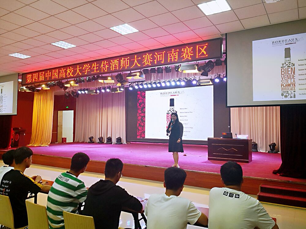会上,王楠向110名参赛选手介绍了第四届中国大学生侍酒师大赛河南赛区竞赛规程。(食品与生物工程学院 杨增光 图/文)