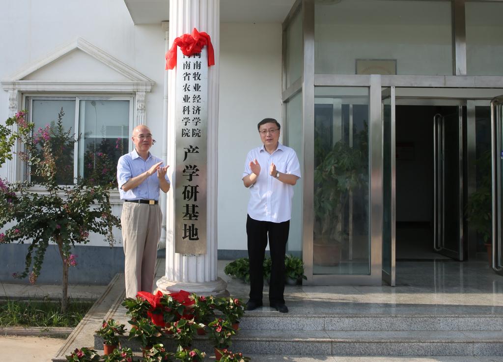 7月23日下午,我校与河南省农业科学院在平原新区河南现代农业科技试验示范基地签订了产学研合作协议,并举行了产学研基地揭牌仪式。河南省农业科学院党委书记李留心、副院长乔程鹏,我校党委书记穆瑞杰、副校长张卫宪等出席揭牌仪式,省农科院科研处、推广处、畜牧兽医研究所等相关部门负责人,我校党政办、发规处、科研处、动物科技学院等相关部门负责人及教师代表参加了仪式。揭牌仪式由省农科院畜牧兽医研究所所长徐照学主持。