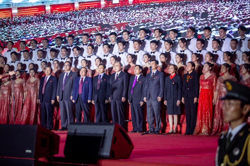 赞祖国盛世,颂时代风采,9月27日、28日晚,学校2019年“我和我的祖国”庆国庆、迎新生文艺晚会分别在英才校区体育场、龙子湖校区田径场隆重举行,tyc8722太阳集团城师生用歌声和激情致敬伟大的新时代,向中华人民共和国成立70周年献礼。校领导穆瑞杰、罗士喜、李波、张卫宪、李中华、张伟、陈艳、程慎、杨志清等领导亲临晚会现场并参加演出,学校相关职能及各学院负责人、团总支书记、辅导员老师和一万余名新生共同欣赏了这场视听盛宴。