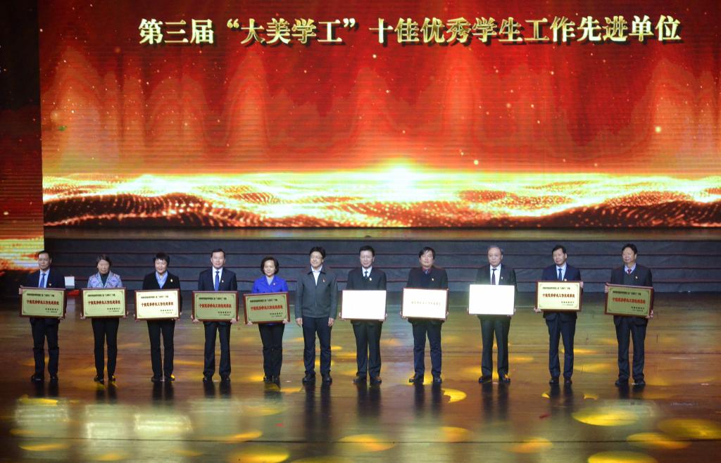 12月3日,由中共河南省委高校工委、河南省教育厅主办的河南省普通高等学校第三届“大美学工”颁奖典礼暨校园文化建设优秀成果展演在河南师范大学举行,我校党委书记穆瑞杰、副校长杨志清应邀参加颁奖典礼,学校荣获第三届“大美学工”十佳优秀学生工作先进单位。