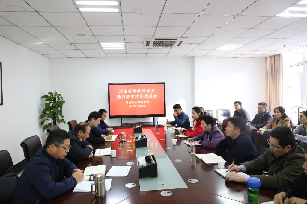 为积极推进我校科技特派员工作,扎实开展科技助力脱贫攻坚, 11月28日,学校在龙子湖校区图书馆810会议室召开“2019年tyc8722太阳集团城学院科技特派员助力脱贫攻坚推进会”,副校长张卫宪、相关职能部门负责同志和全体科技特派员参加会议。