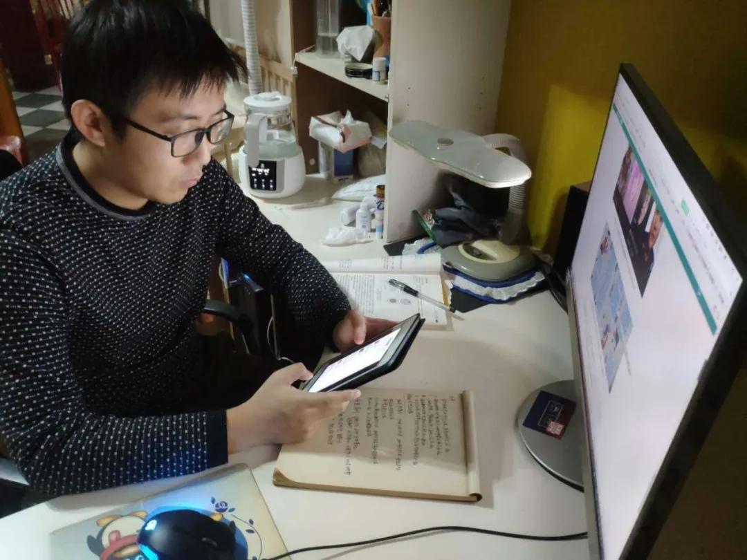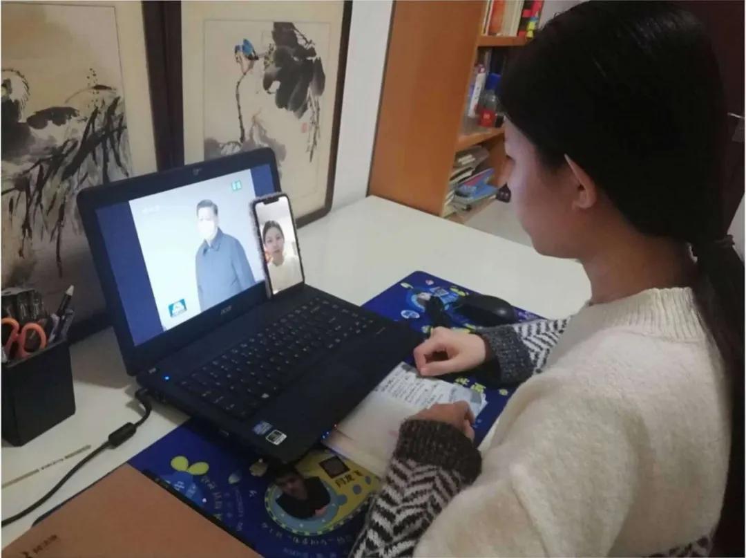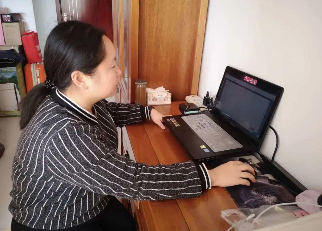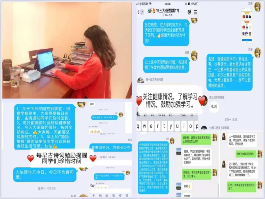 辅导员段婧边安抚孩子边进行学习疫情信息统计 |