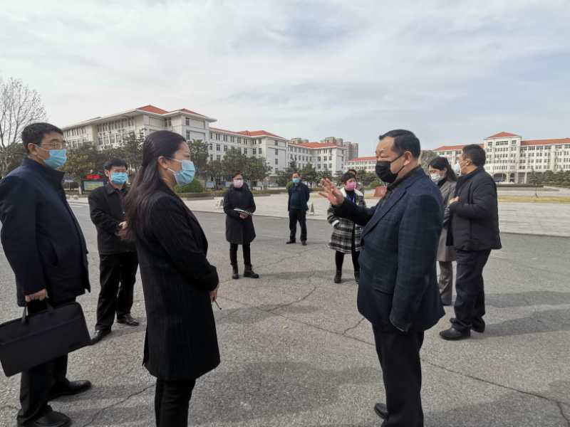 3月11日下午,惠济区教体局副局长崔双丽一行莅临我校,检查指导学校疫情防控工作,副校长程慎,院长办公室主任贾江、校医院院长梁天玉、后勤处处长姬道兴、保卫处处长权太举、英才校区综合服务办公室主任王永全等陪同检查。