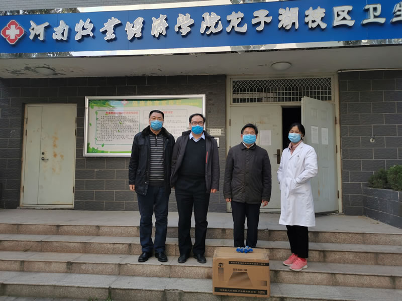 3月13日,校企合作单位河南田中禾农牧有限公司董事长穆建平委托社会服务办公室,捐赠我校3000支体温计,用于开学后学生防疫工作。校长罗士喜、副校长张伟、社会服务办公室主任胡迎利等出席捐赠仪式。