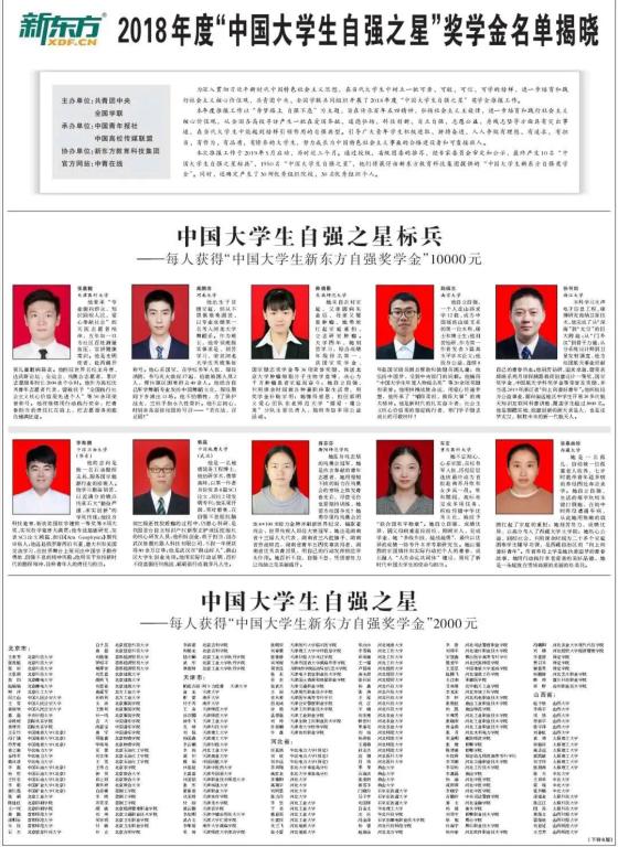 近日,共青团中央、全国学联共同组织的2018年度“中国大学生自强之星”奖学金名单揭晓,我校能源与智能工程学院王懂同学、王宁宁同学获“中国大学生自强之星”荣誉称号和奖学金。