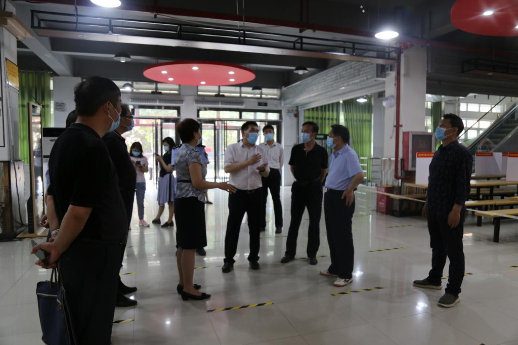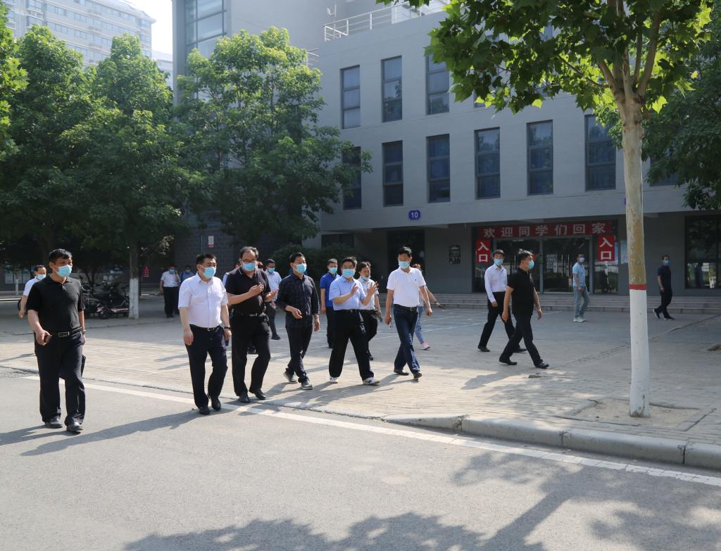 5月22日,郑东新区专项检查组到我校查看返校复学及相关工作,郑东新区教体局书记王恒、市场监管局局长郭伟东、社会事业局副局长谢国海、龙子湖办事处党工委书记张利刚、办事处主任王少辉等到校实地调研学校疫情防控措施落实、返校复学相关工作情况。校长罗士喜、副校长张伟、杨宝进陪同检查。