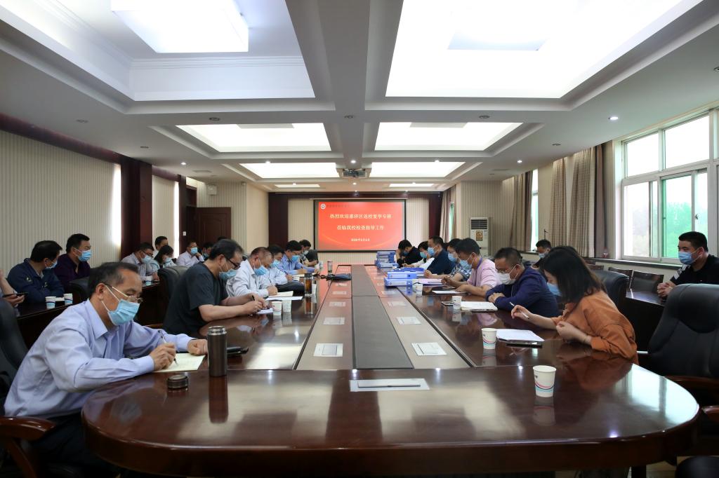 5月6日下午,由惠济区教文体局冉国旗一行7人组成的返校复学专班,到我校英才校区督查返校复学准备工作,校长罗士喜,校党委副书记李俊杰,副校长张卫宪、张伟、杨志清、杨宝进和学校防控办各工作组负责同志陪同检查。