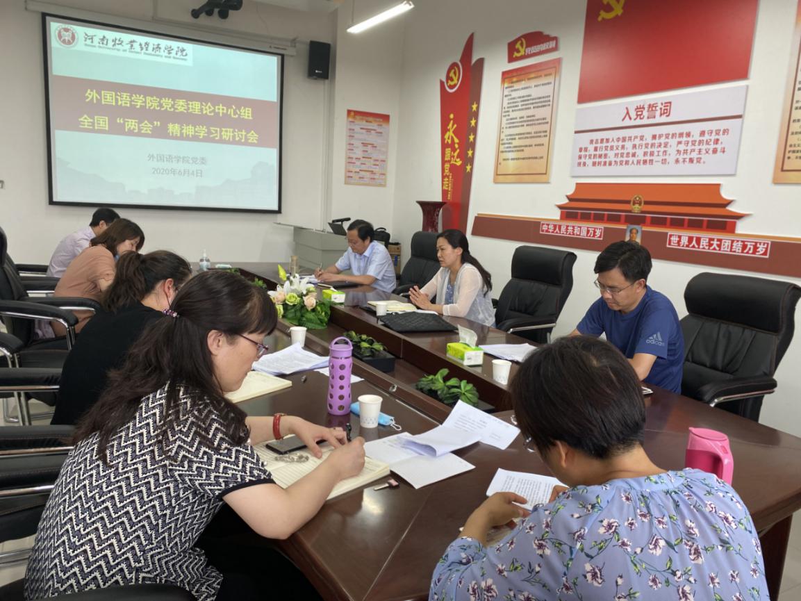 6月4日下午,外国语学院在龙子湖校区1号楼524室召开党委理论学习中心组学习扩大会议,副校长杨志清应邀到会并巡听指导,该院副科级以上人员参加会议,会议由该院党委书记王明栓主持。