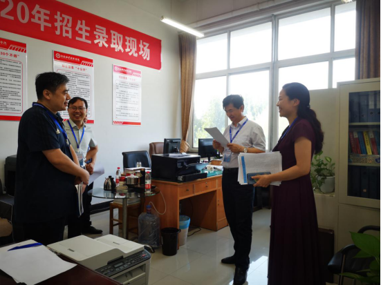 李中华和杨志清在听取我校2020年招生录取工作进展情况后,充分肯定了我校招生录取工作取得的成绩。李中华表示,招生录取工作社会关注度高,涉及考生切身利益,招生工作人员作风要扎实、态度要严谨、服务要高效,要严格执行上级招生政策规定,按照录检程序和要求,认真做好录检各项工作,严守招生纪律底线,贯彻好“公开、公平、公正”的招生原则,自觉接受各方监督,圆满完成今年的招生工作任务。
