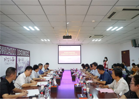8月31日,外国语学院在龙子湖图书馆841会议室召开专业建设研讨会,省涉外翻译与语言服务专家指导委员会主任、中国翻译协会对外话语体系研究委员会副主任、省委外办原一级巡视员杨玮斌,中原工学院外国语学院院长郭万群教授、华北水利水电大学社科处处长魏新强教授、河南农业大学外国语学院院长张俊杰教授,郑州国际会展中心有限公司党委委员、董事、副总经理揭开宇、河南省国际贸易网商协会常务秘书长王毅、河南伊赛尔电子商务有限公司总经理申伟栋等校外专家应邀参会。我校副校长吴中教授出席会议,外国语学院班子成员及商务英语专业教师参加会议。研讨会由外国语学院院长陈延潼主持。
